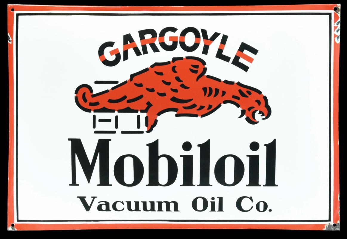 Ursprünglich als Hersteller von Lampen- und Schmierölen bekannt, stieg man zu Beginn der 1900er Jahre im Sektor der Automobilindustrie mit der Produktion von Kraftstoffen und Motorenöl in ein lukratives Geschäft ein. Das Aushängeschild dabei: Mobil Oil. Erst ein reines Motorenöl, später auch Namensgeber für Benzin. Anfangs noch mit dem hier dargestellten Speiher, dem Gargoyle beworben, Mitte des 20. Jahrhunderts dann durch den bis heute bekannten Pegasus ersetzt.